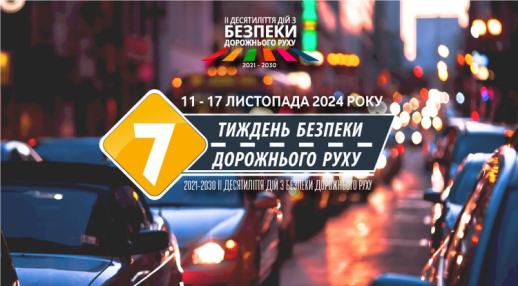 У рамках Всеукраїнського тижня безпеки дорожнього руху відбудеться низка заходів, передбачених Загальним Планом заходів Тижня безпеки дорожнього руху 11-17 листопада 2024 року.