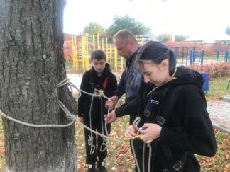 - в’язати спеціальні вузли, необхідні для переправ, страховки й побудови табору;