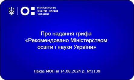 Наказом МОН від 14.08.2024 р. №1138 надано гриф навчальним програмам: