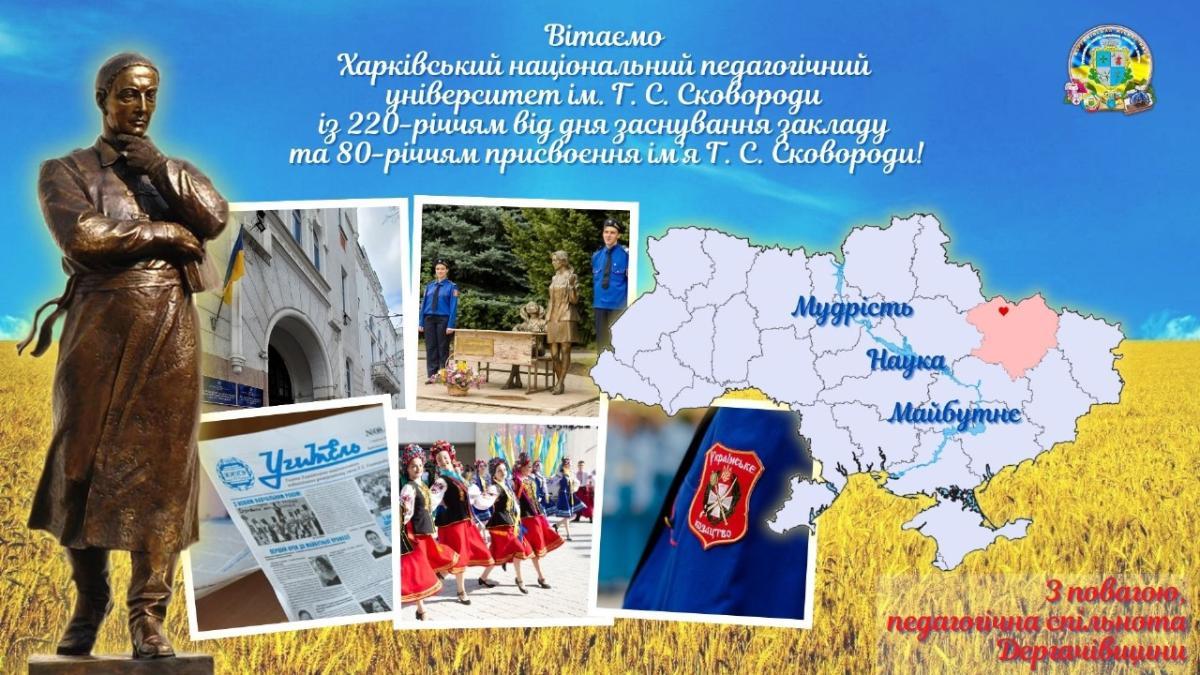 Освітяни Дергачівщини вітають Харківський національний педагогічний університет ім. Г.С.Сковороди із 220-річчям від дня заснування закладу та 80-річчям присвоєння ім’я Г.С.Сковороди