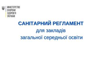 Міністерство охорони здоров’я України внесло зміни до «Санітарного регламенту для закладів загальної середньої освіти», які стосуються організації освітнього процесу. Раніше документ передбачав, що в закладах освіти, які працюють у дві зміни, навчання учнів 1-4 класів повинно бути організовано в першу зміну, а тепер навчання учнів початкової ланки можливе й у другу зміну.