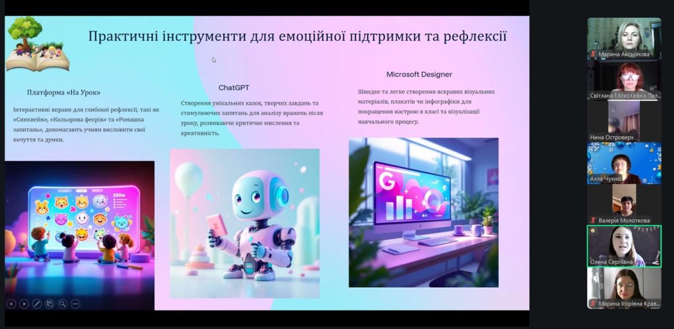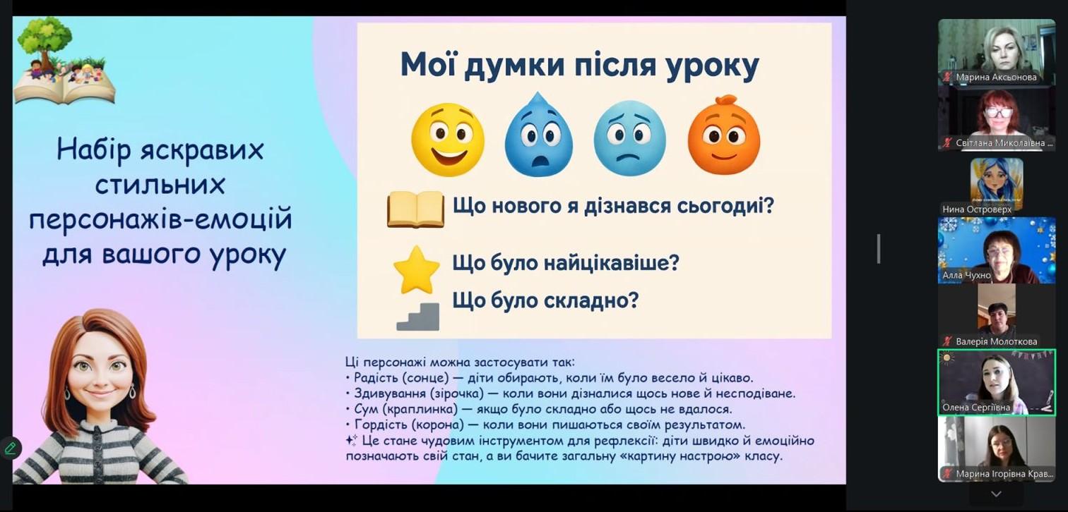 Тема зустрічі – «Як штучний інтелект допомагає у створенні емоційного налаштування та рефлексії на уроках в початковій школі».