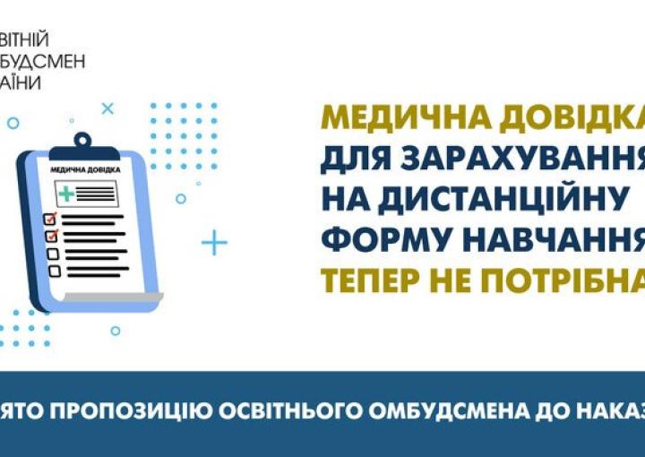 Медична довідка для зарахування на дистанційну форму навчання тепер не потрібна